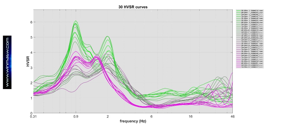 winMASW® ACD-2025: nel video è mostrato uno dei modi per gestire più curve HVSR registrate lungo array 2D